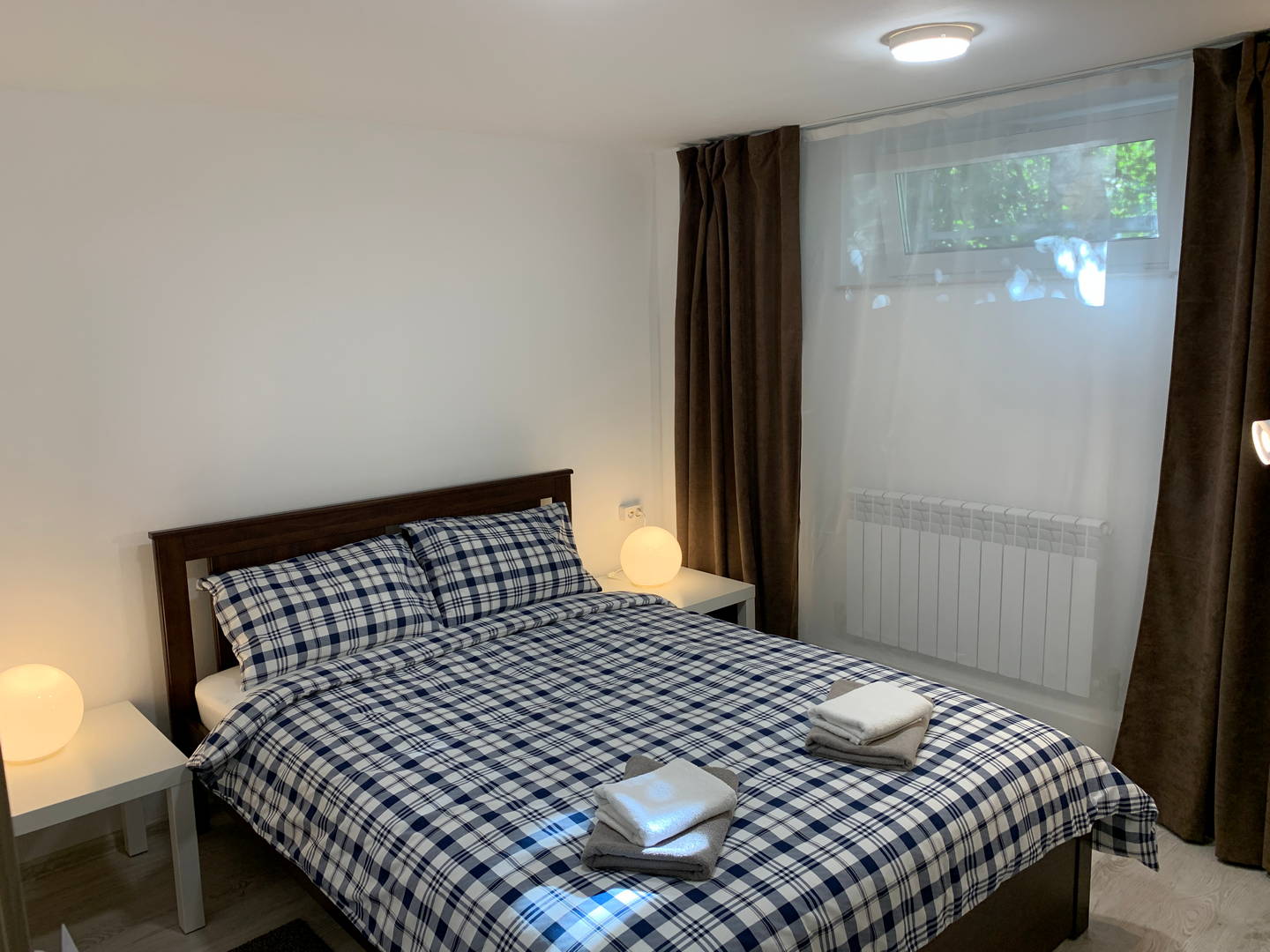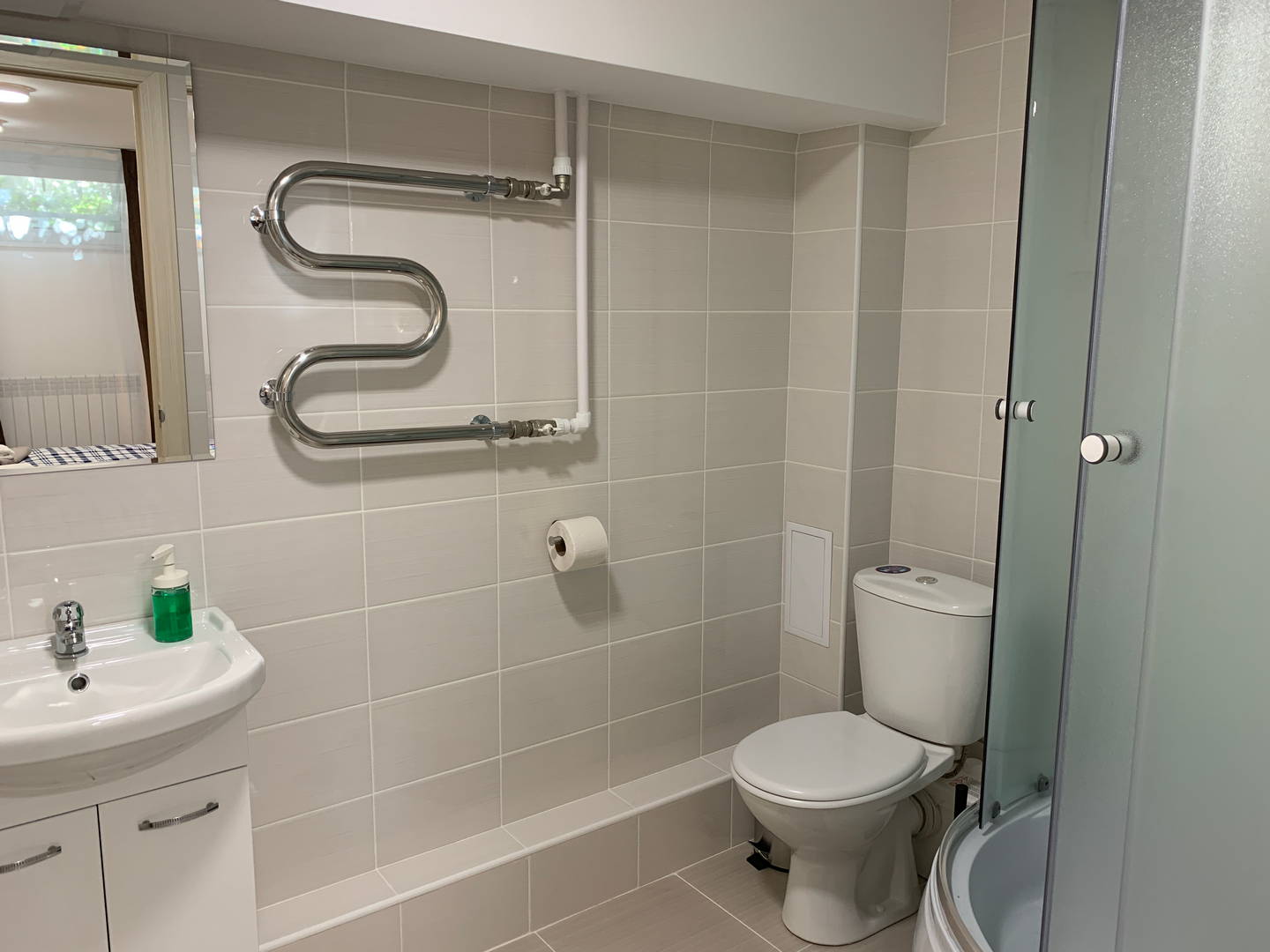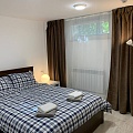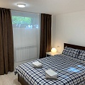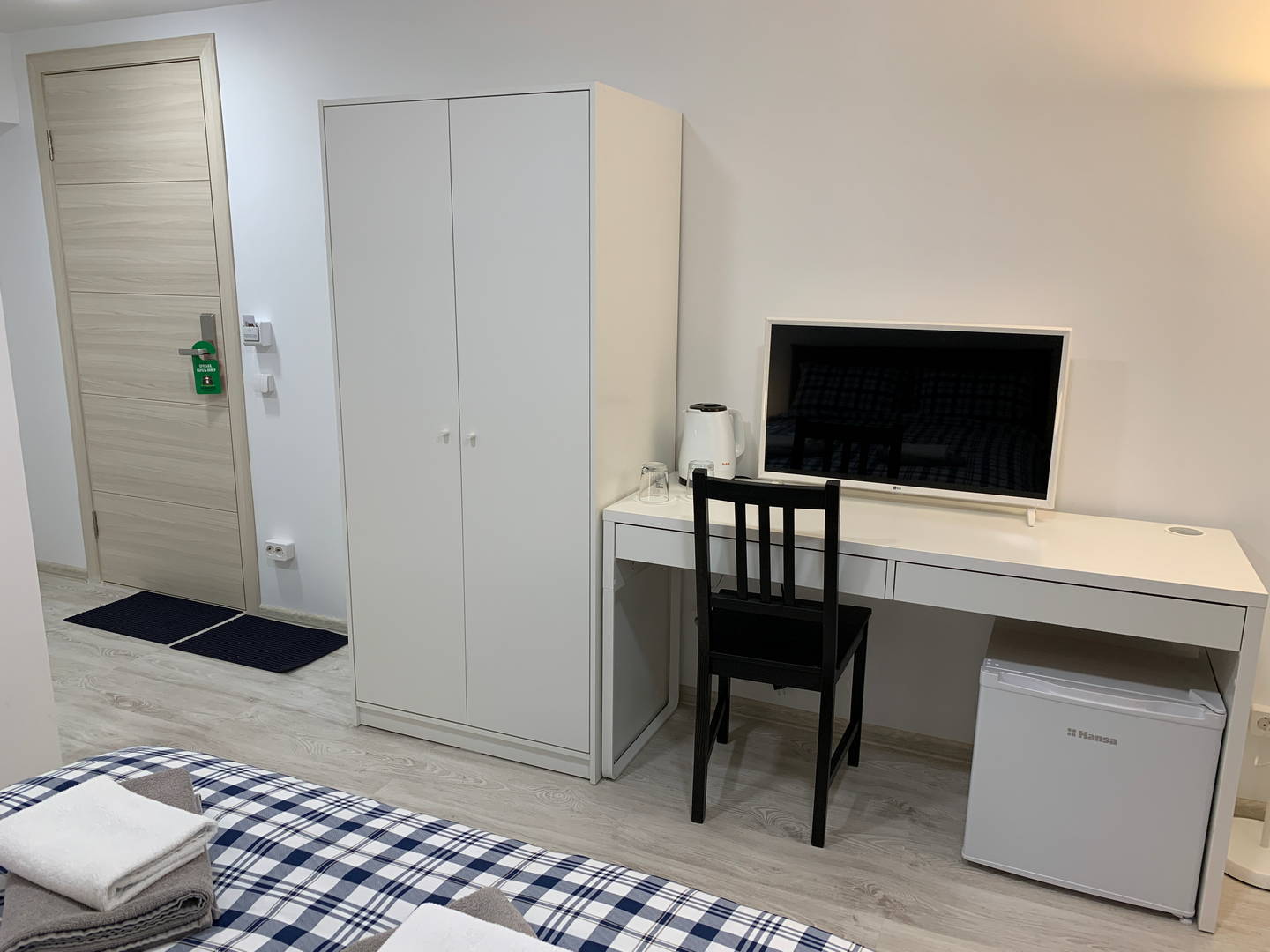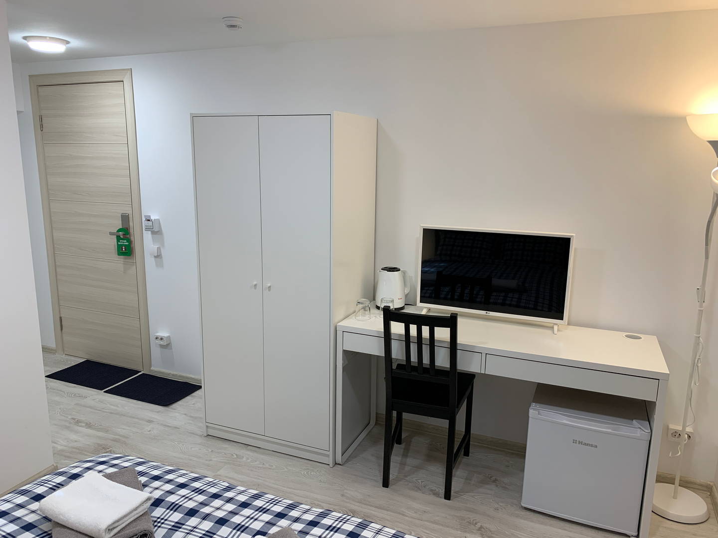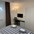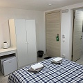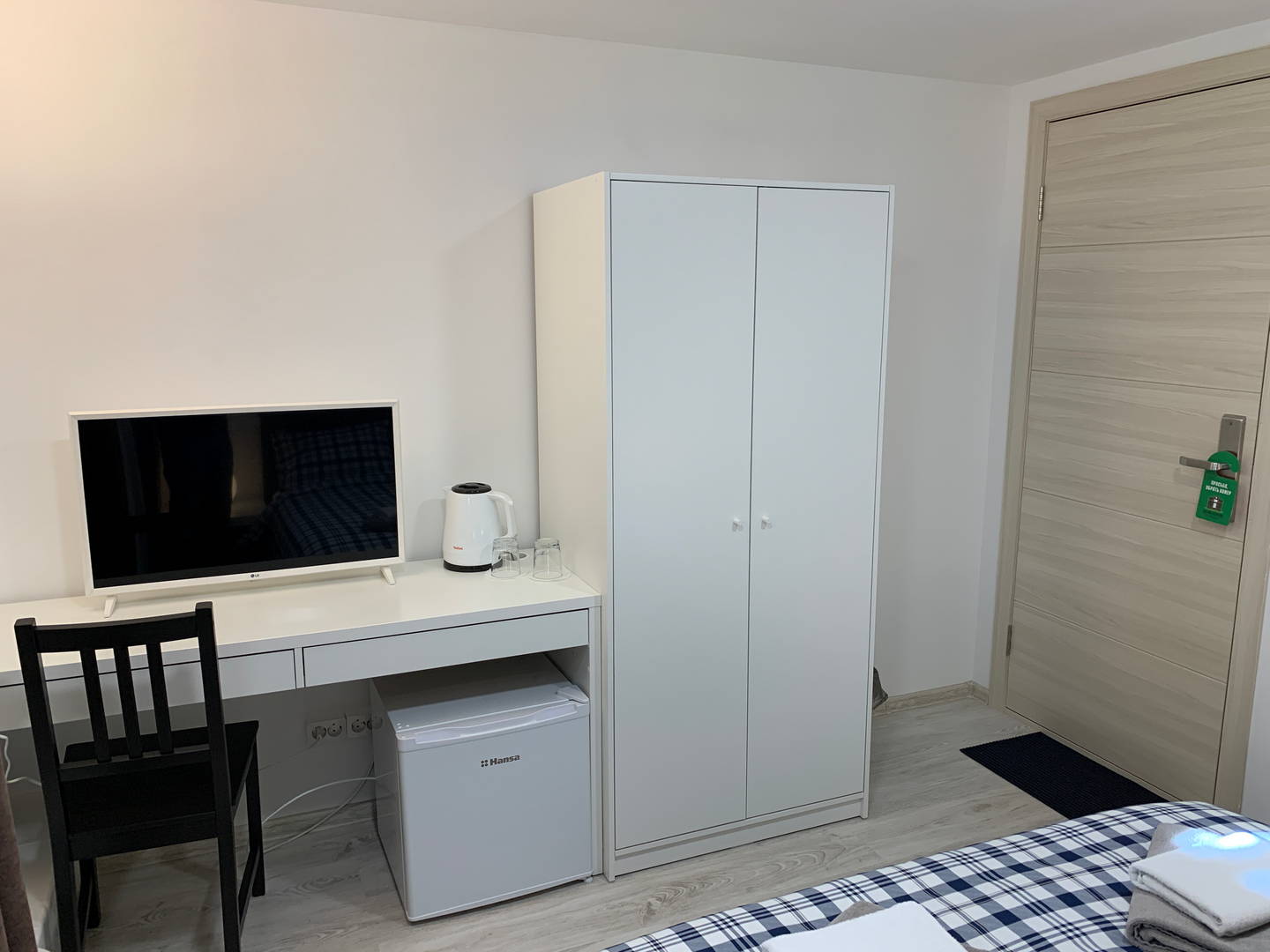 | Двухместный номер с одной двуспальной кроватью, расположен на цокольном этаже. Оборудован душевой кабиной, LED телевизором, холодильником, чайником и феном. Площадь номера 17 м2 | |